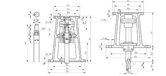 機架型號 減速機型號 D1 D2 D3(H8) D4(H9) D5 D6 n1-d1 n2-d2 H H2 H3 H4 H5 H6 H8 H8 H9