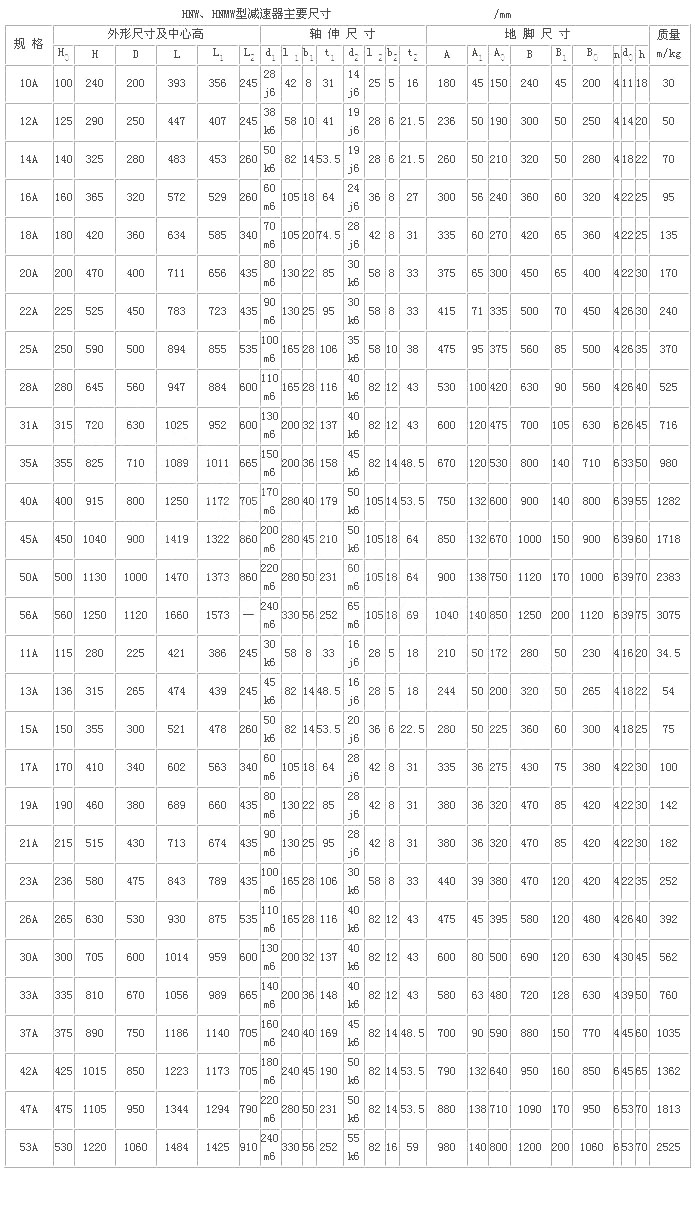 H型星輪減速器(JB/T 8712—1998)代替原混合少齒差星輪減速器(ZBJ 19006—1988)屬少齒差漸開線行星齒輪傳動,具有體積小,承載能力高,傳動比寬、密,效率高,壽命長,傳動平穩(wěn),允許高速輸入等特點。采用單元化結構,以行星齒輪、內(nèi)齒輪、滾動星輪、偏心套和行星架組合的主要單元,代號H;用擴大傳動比的附加單元代號N;用來改變輸入方向的附加單元代號Z。同一種機座號可采用4種承載能力單元結構,因而在產(chǎn)品型號后面附注A、B、C、D4個承載能力代號,即輕型、中型、重型、超重型。適用于冶金、礦山、電力 、起重、運輸、橡膠、水泥、造紙、制糖、鍋爐、建筑等領域,為通用型減速器。